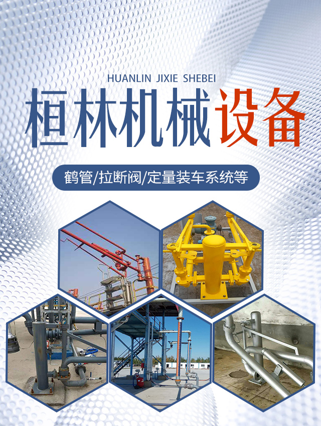 石家庄桓林机械设备有限公司是从事石化储运设备及管道配件的制造公司,产品广泛用于石油、化工、食用油、酒类等液体的储运,并拥有较强的技术力量、生产设备及检测装置。公司成立伊始,始终秉承"以人为本精益求精 科技兴邦 合作共赢"的宗旨,石家庄桓林机械设备有限公司设计生产加工液体装卸臂、鹤管、火车鹤管、撬装鹤管、低温鹤管、定量装车系统、油气回收装置、拉断阀、干式阀、低温拉断阀、等产品。
